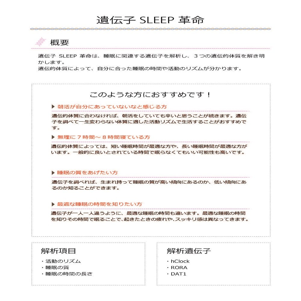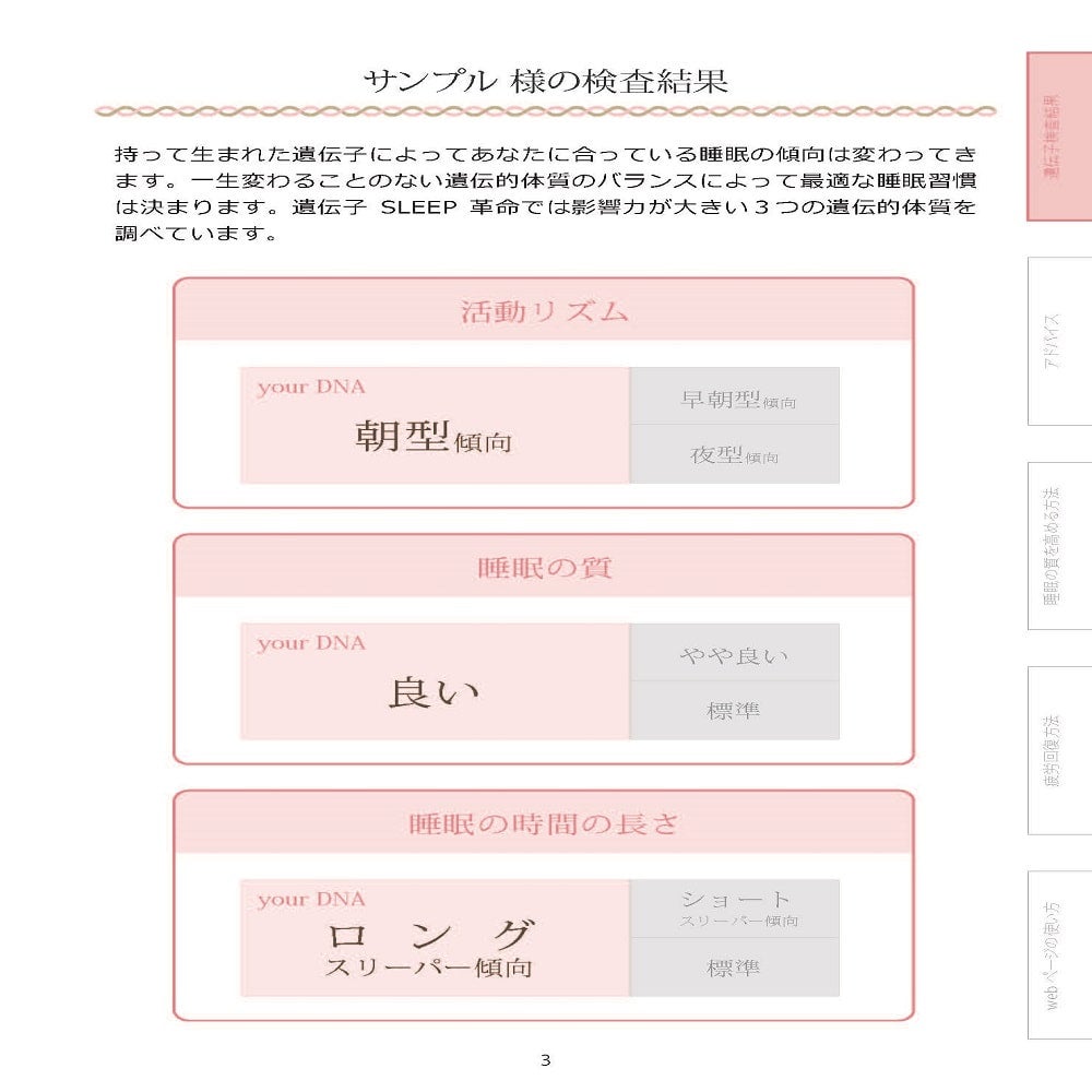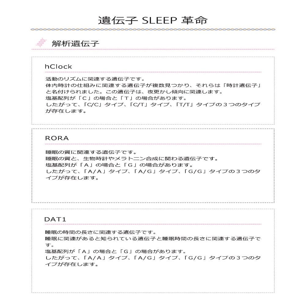 それは、あなたの「活動リズム」「朝型/夜型」「睡眠の質」「入眠スピード」、そして「最適な睡眠時間」まで、そのほとんどが生まれ持った遺伝子によって決まっているということです。つまり、あなたに合った睡眠法は、あなたの中にすでにあるのです。さあ、遺伝子レベルで自分を理解し、あなた本来の、最高のパフォーマンスを取り戻しませんか?